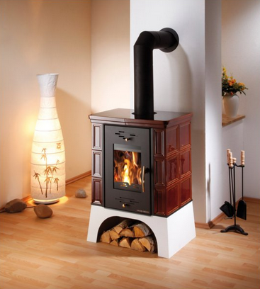 Haas & Sohn – piec wolnostojący EBOLI, kafle brązowe, podstawa biała