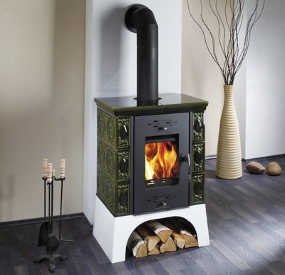 Haas & Sohn – piec wolnostojący EMPOLI, czarna, kafle zielona