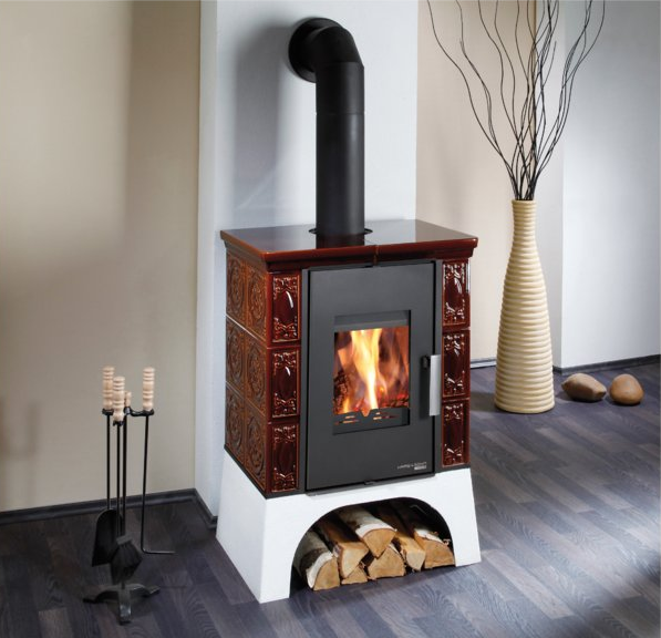 EBOLI AL II z wymiennikiem wodnym, kafle brązowe, podstawa biała