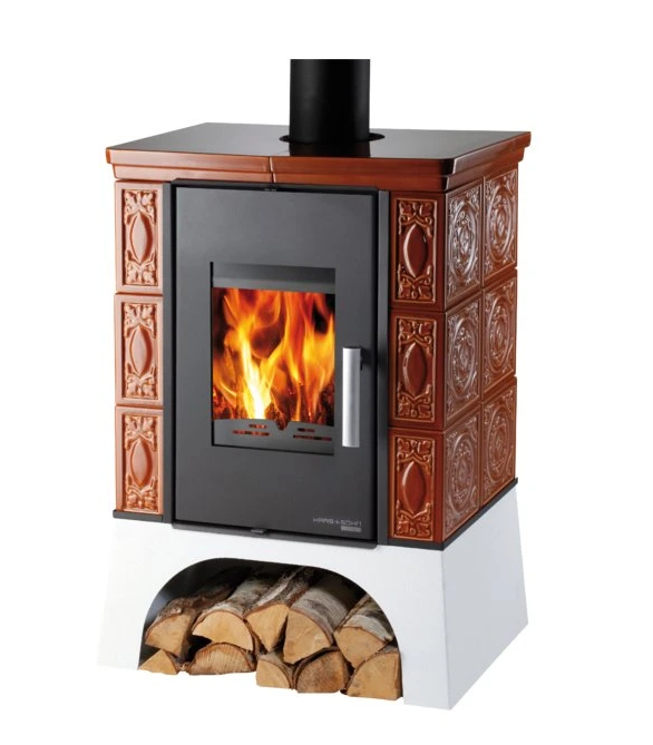 EBOLI AL II z wymiennikiem wodnym, kafle karmel ze wzorkiem, podstawa biała