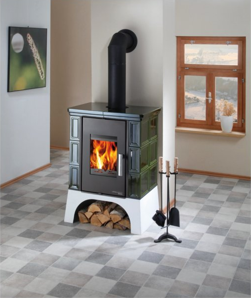 EBOLI AL II z wymiennikiem wodnym, kafle zielone, podstawa biała