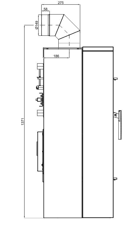 Piecyk posiada możliwość wpięcia doprowadzenia powietrza zewnętrznego (Ø100).